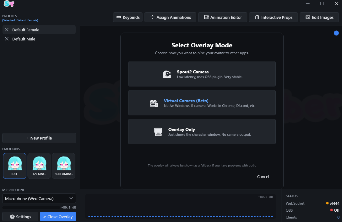 - Virtual camera built in (using Spout2)